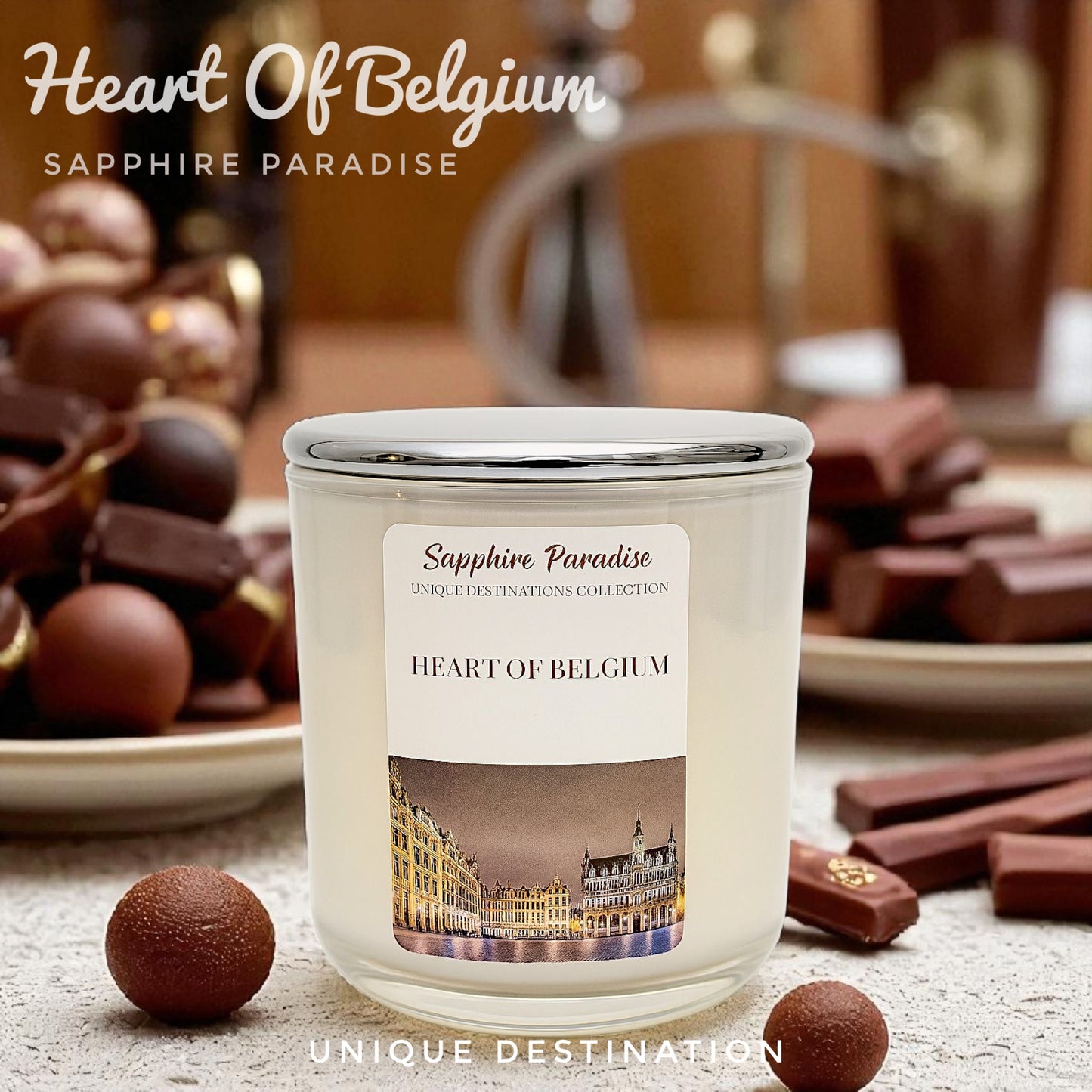 Discover the elegance of Heart of Belgium, a luxurious scented candle inspired by the charm and indulgence of Belgian culture. Notes of Angelica and Champagne offer a fresh and sophisticated opening, while the sweet allure of Strawberry and delicate Jasmine evoke a romantic essence. Rich hints of Chocolate and Vanilla add a decadent, creamy warmth, perfectly balanced by the earthy depth of Amber. This candle creates an atmosphere of refined indulgence, blending floral, fruity, and gourmand notes for a truly captivating scent experience. Light it to bring a touch of Belgian luxury into your home.